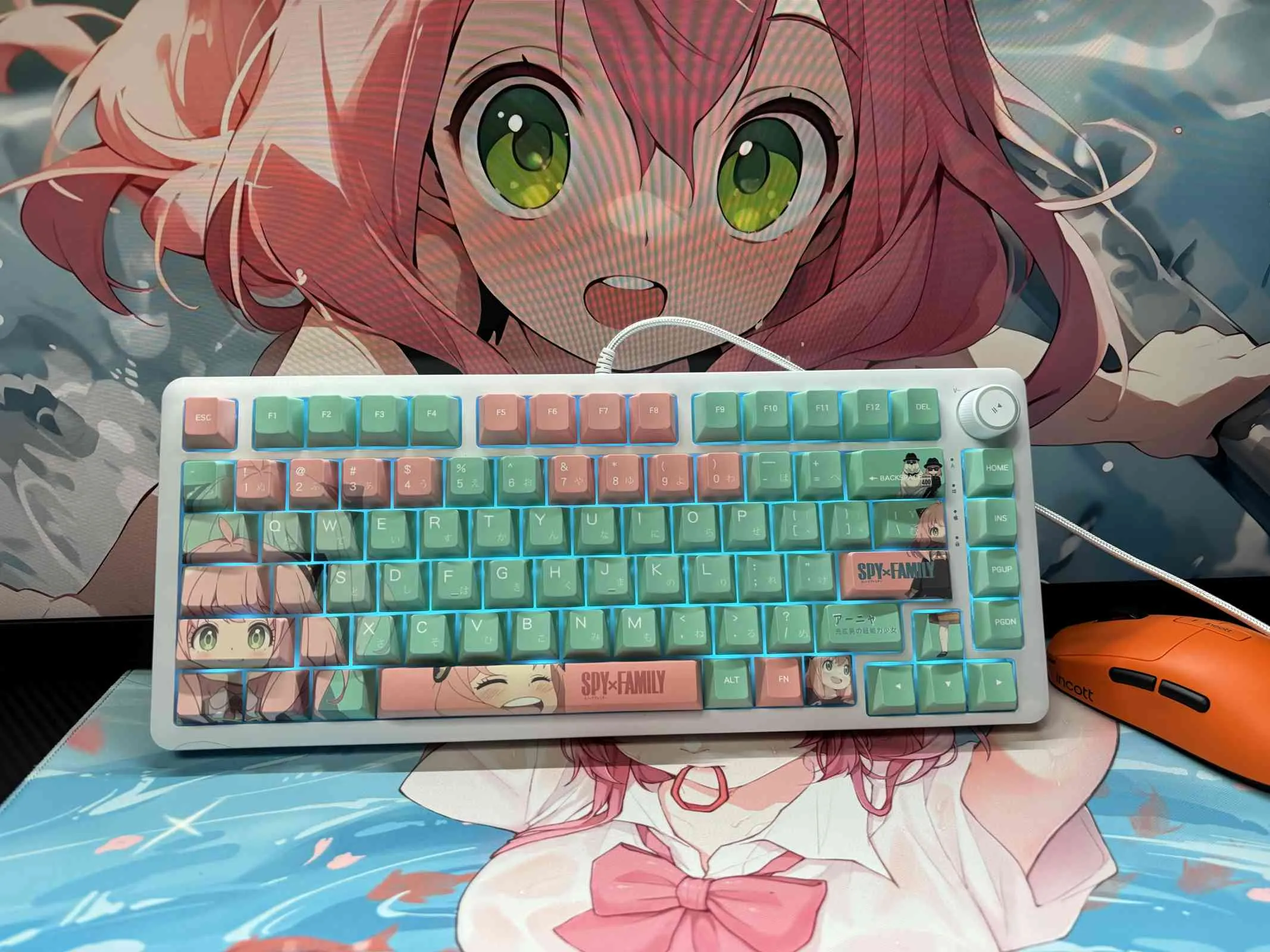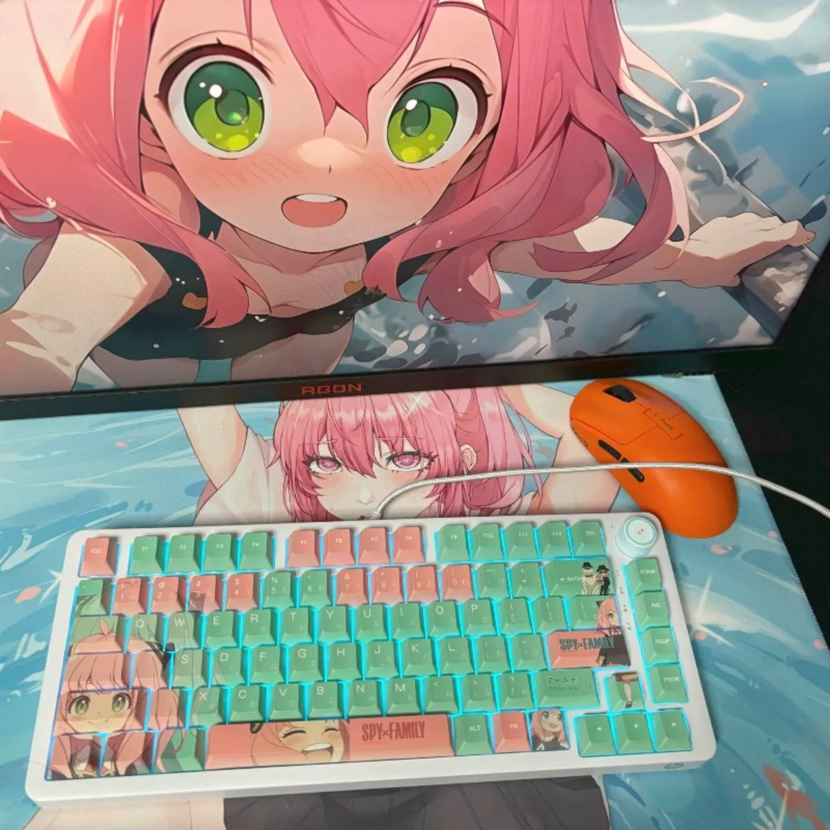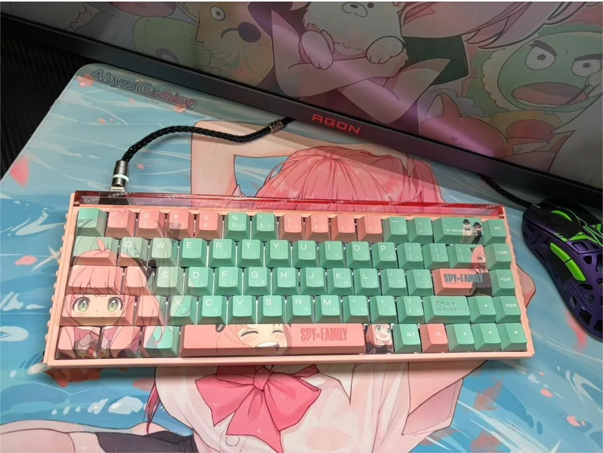 Immerse yourself with the SPY X FAMILY: Anya Forger Cherry Keycap Set! The lovely mix of pink and mint green keycaps in this adorable set gives it a bright and lively look. An eye-catching whimsical touch is added by the distinctive white, pink and blue lettering. “SPY X FAMILY” displayed proudly by the Space and Enter buttons that adds to the concept. The keycaps on the left and right feature character symbol designs. That accentuate character’s individuality. This keycap set’s long lifespan and comfort for everyday use. Which are guaranteed by its construction from sturdy PBT. This set provides an easy and pleasant typing experience with its Cherry profile. Get a new keyboard now!