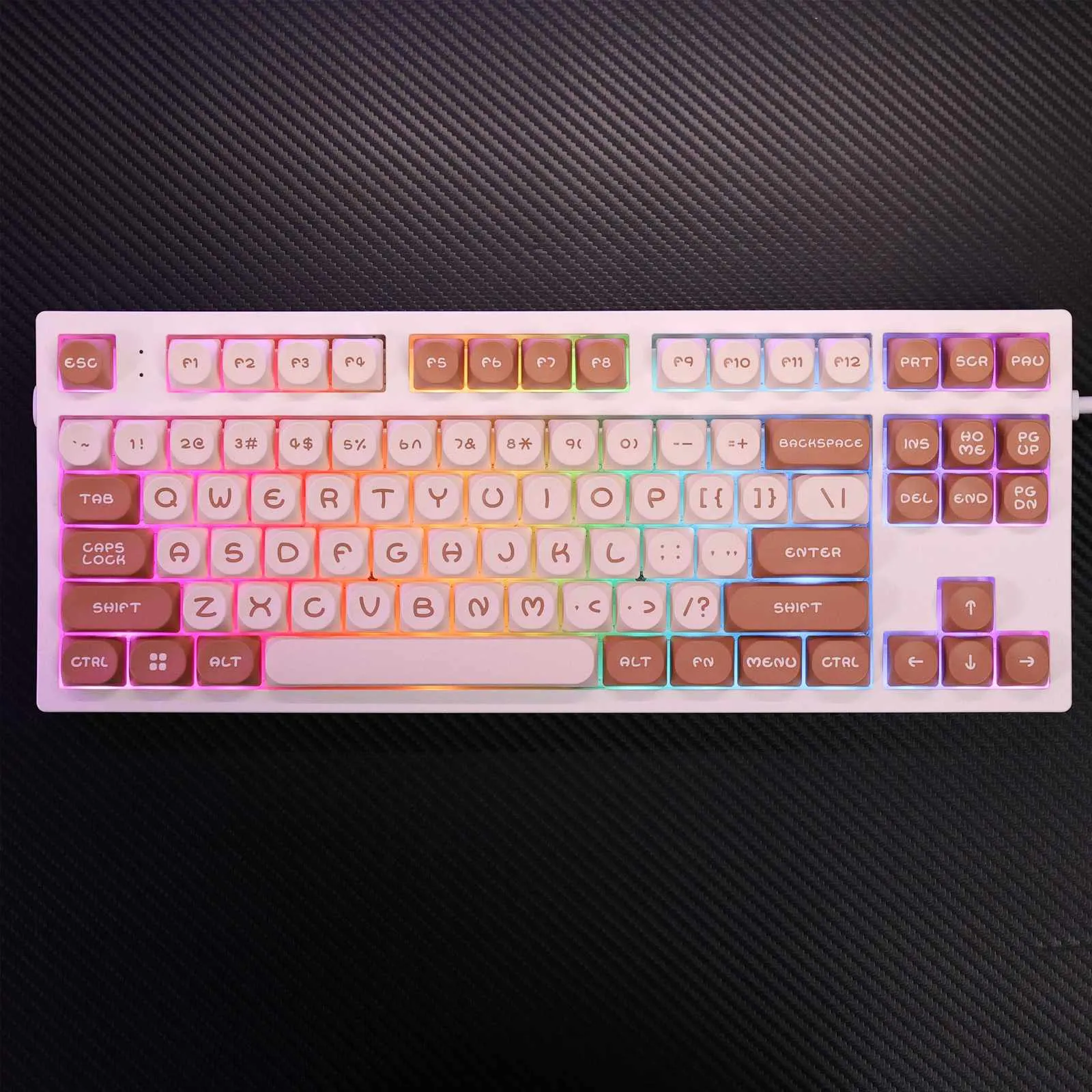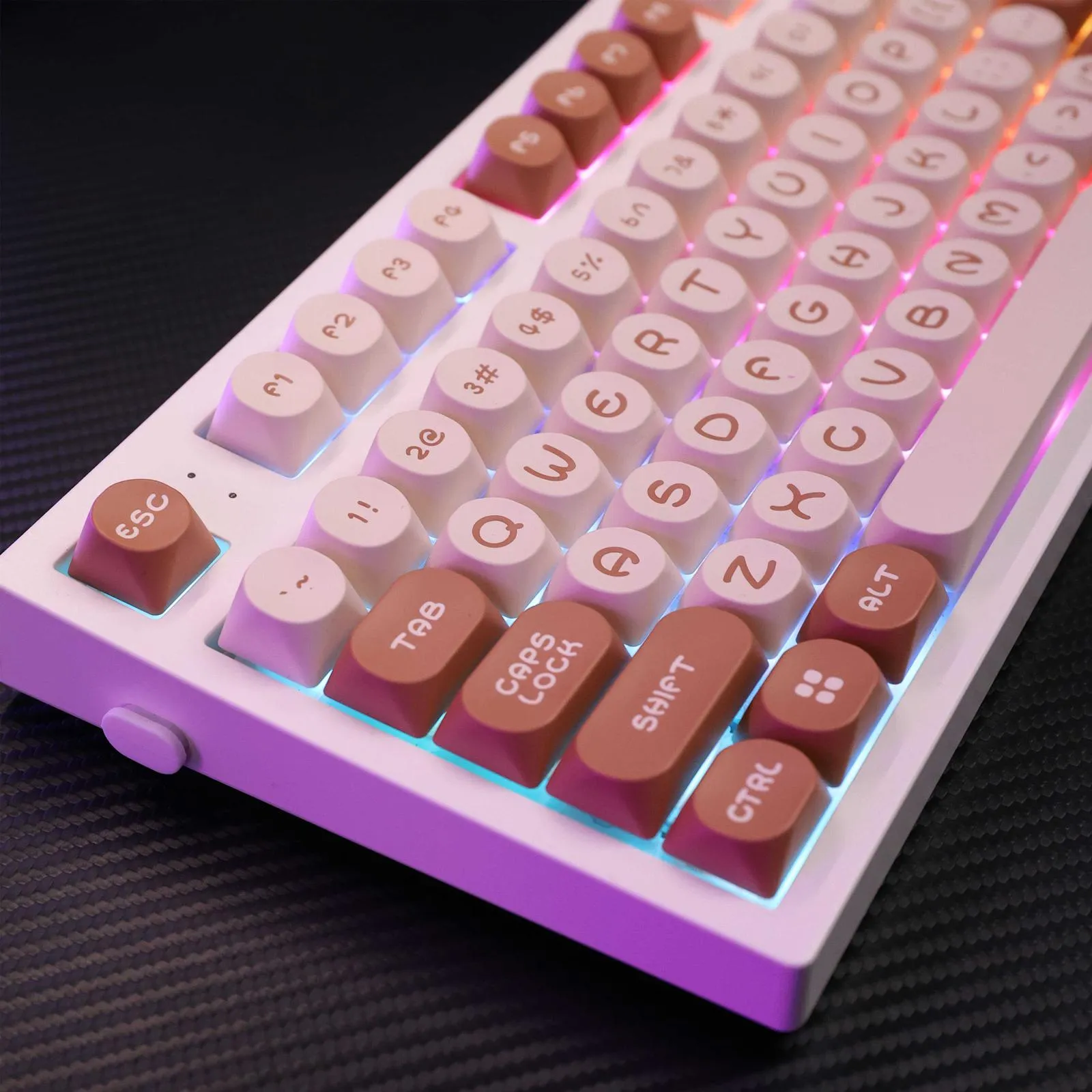 Elevate your keyboard with the Stylish MOA Keycap Set, available in three delightful flavors! Select the Chocolate Milk variant for a cozy and welcoming appearance. It has a beige base with rich brown keycaps. The Peach Pink variant adds a pleasant touch to your setup by combining soft beige with adorable pink keycaps. The Matcha White variant which is ideal for tea enthusiasts. That features a beige base with vivid green keycaps for a refreshing vibe. Every keycap has a distinct and bigger font style that improves readability and appearance. For all keyboard fans that the MOA Keycap Set blends style and functionality with its sturdy PBT construction!