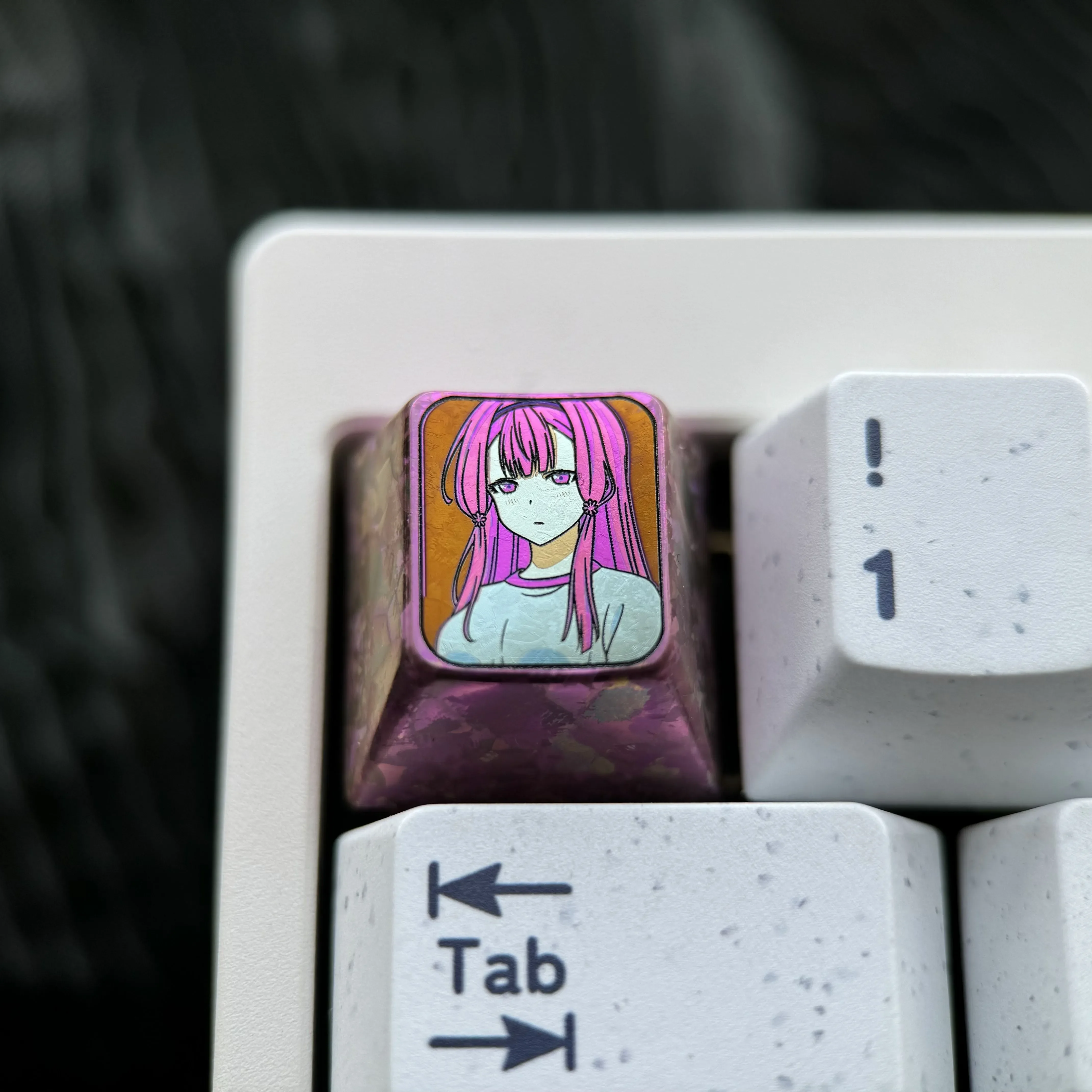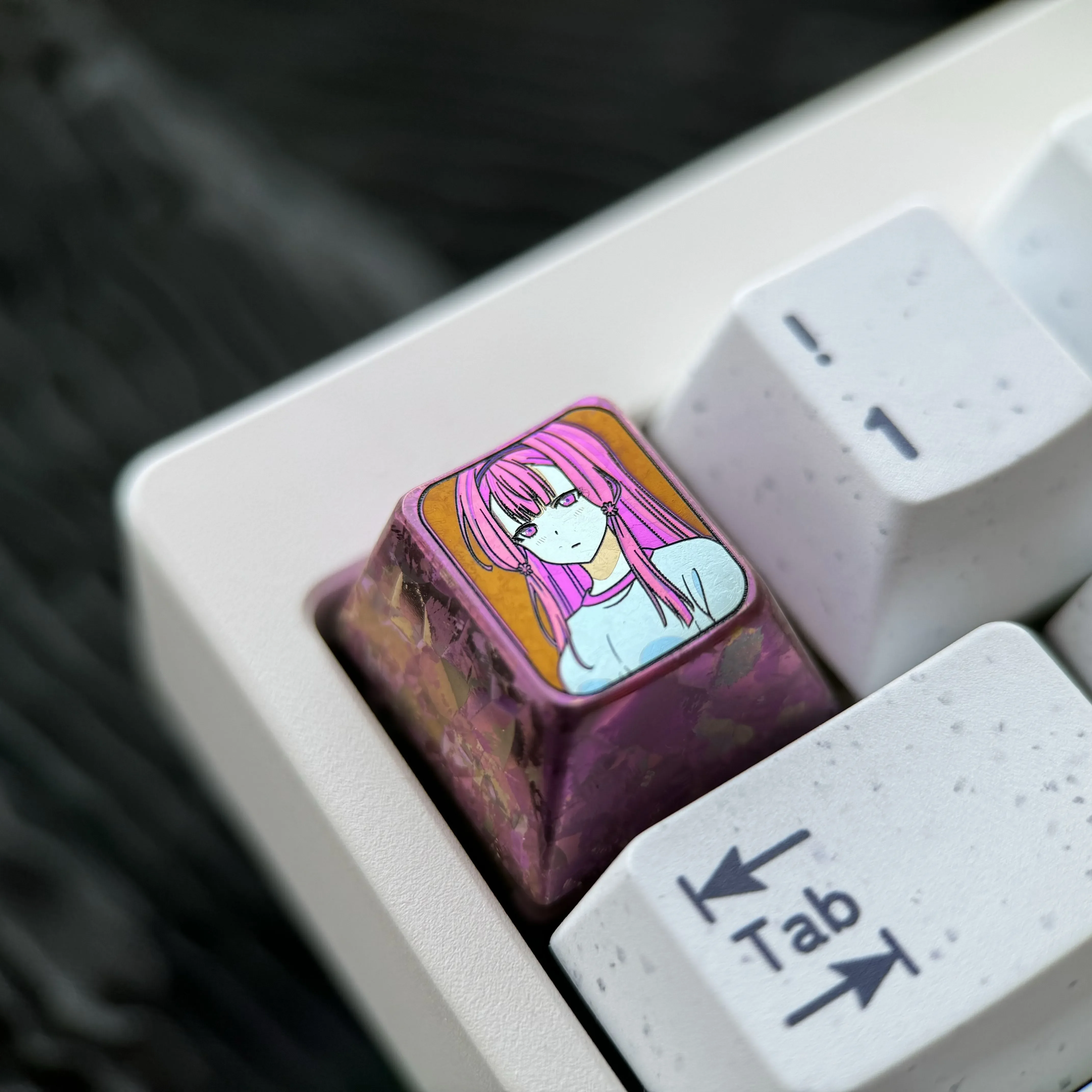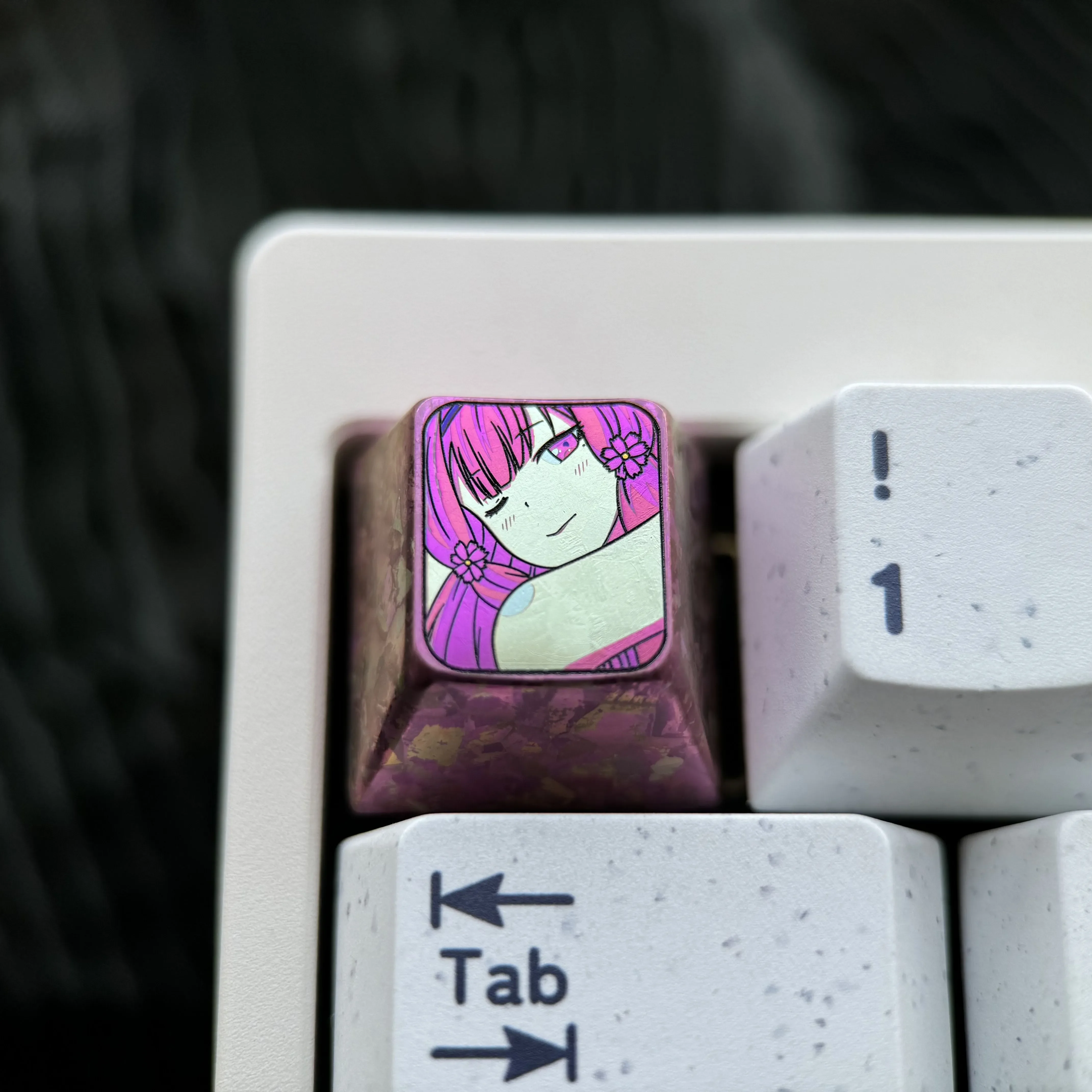 Immerse yourself in a world where anime fantasy meets delicate elegance with the ORESUKI Are you the only one who loves me?: Sakura Akino Keycaps. Crafted from premium titanium, this exquisite metal keycap transforms your keyboard into a canvas of mystical beauty. The stunning purple-red ice crystal anime motif , intricately detailed, evokes a serene yet vibrant aesthetic. Which perfect for anime enthusiasts and art collectors alike. This unique Titanium Keycap is not just an accessory; its a statement piece, blending durability with unparalleled artistic flair. Whether you’re enhancing your gaming setup, inspiring creative work, or curating a premium collection, this Anime Keycap offers a touch of enchantment. Its robust construction ensures lasting beauty, while the captivating design makes it an essential Purple Keycap for any discerning keyboard aficionado. Experience the fusion of art and technology with this exceptional Anime Keycap.