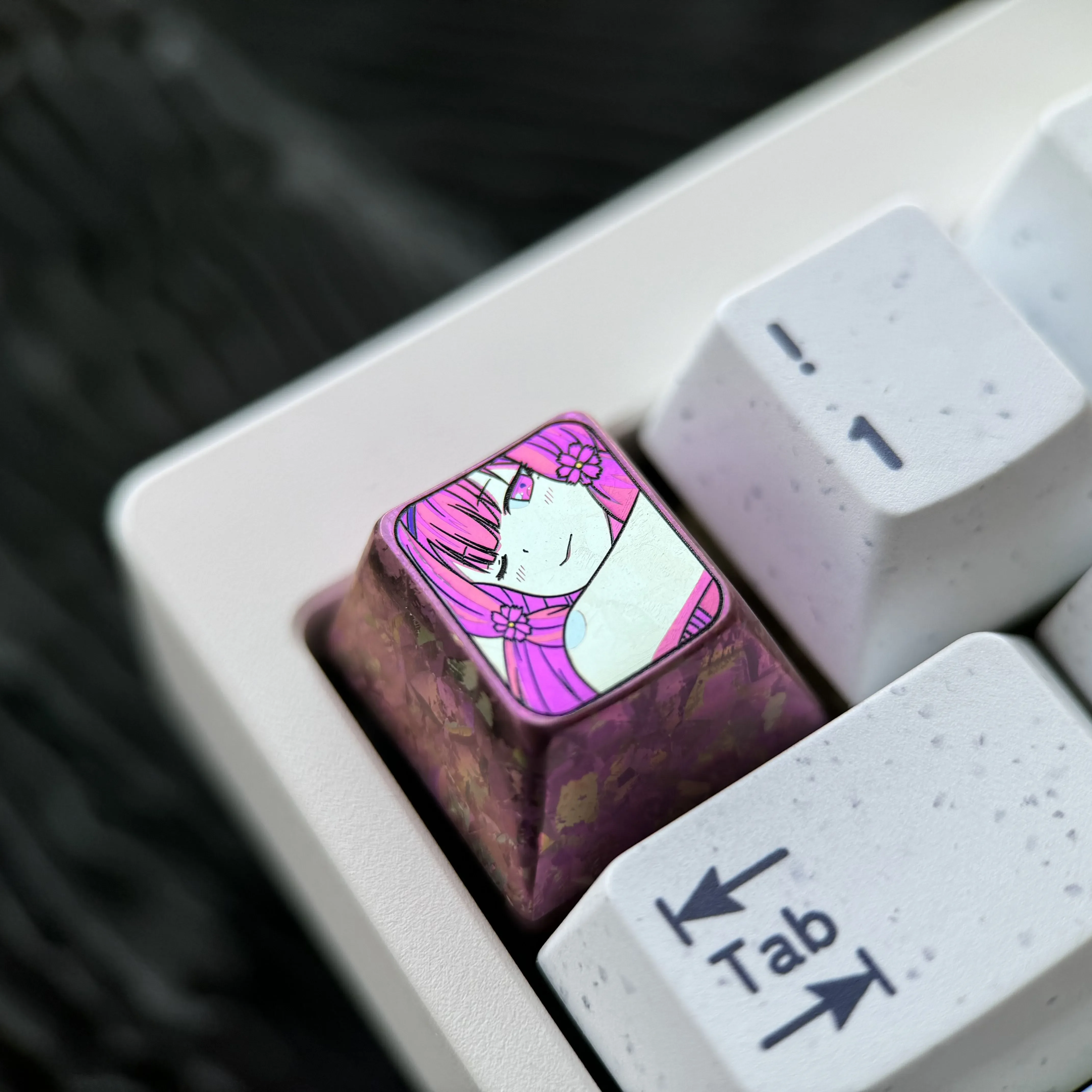 Titanium Sakura Akino Keycaps displaying an enchanting anime design. Creatives design purposely for an anime-inspired desktop.
