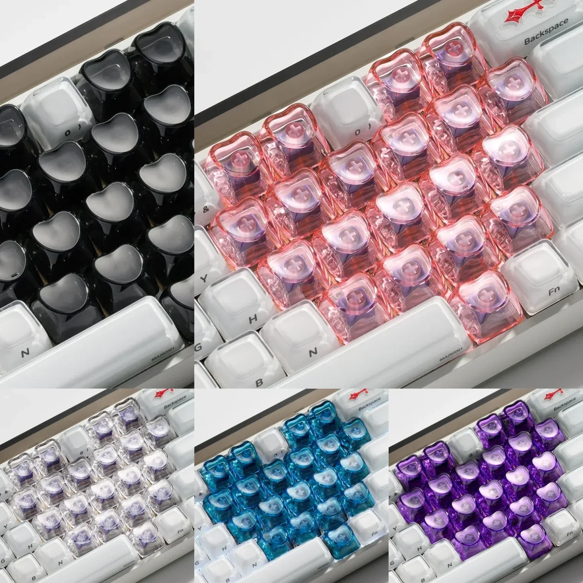 Elevate your typing experience with our exquisite Ethereal Frosted Translucent Cherry Keycap Set, meticulously crafted to bring an ethereal glow to your mechanical keyboard. These Frosted Keycaps are made from high-quality PC material, ensuring exceptional durability and a luxurious feel. The minimalist design perfectly merges translucent beauty with the vibrant potential of your keyboards backlighting, allowing for optimal RGB diffusion that transforms each key into a captivating light source. Imagine your gaming or creative workstation bathed in a soft, elegant luminescence. Our Backlit Keycaps are engineered for those who appreciate both aesthetics and performance, providing a unique visual upgrade that reflects your sophisticated taste. Experience the blend of elegance and cutting-edge design, making every keystroke a visual delight.