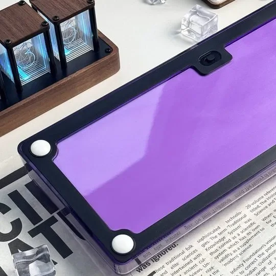 Violet Amber Keyboard with mystical three-layer amber craft keycaps, revealing translucent deep violet and warm amber layers. Keyboard With Stellar Switch