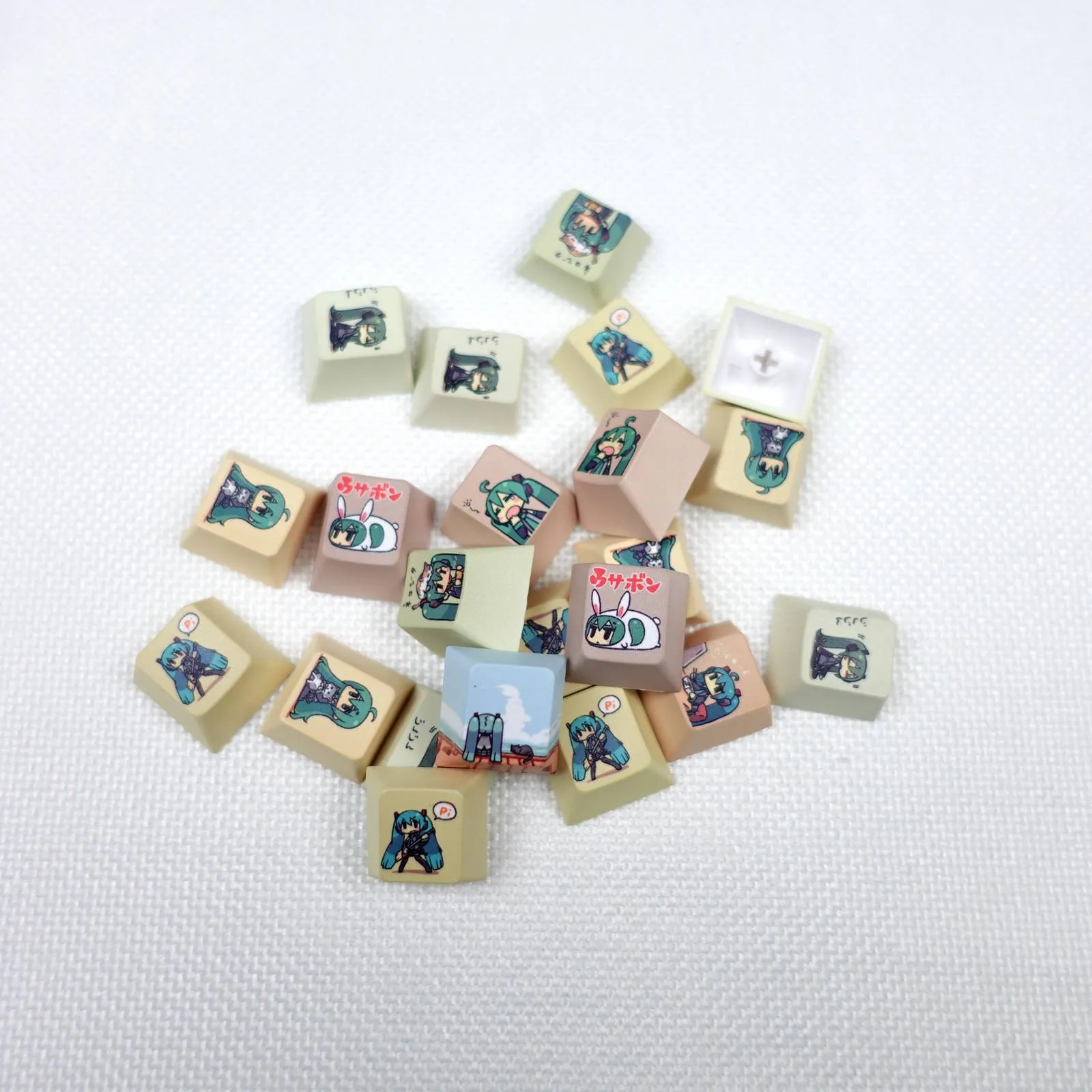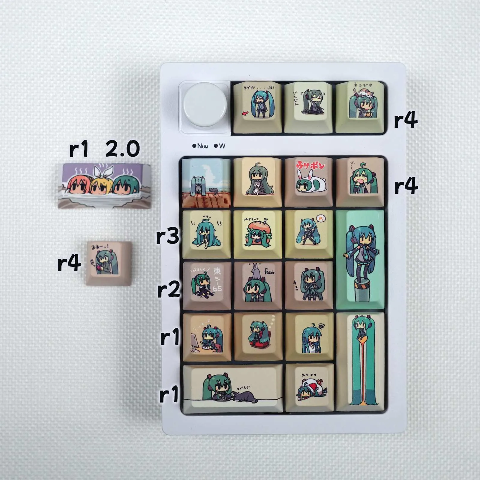 Enhance your keyboard with the VOCALOID: Hatsune Miku Cherry Supplement Keycap Set! With a range of keycap bases—purple, brown, green, blue and more. Which this colorful set offers countless customizing options. Hatsune Miku’s personality comes to life on your keyboard. That with each keycap’s endearing character icon design. These keycaps extended lifespan and resilience for daily usage. That are guaranteed by their construction from sturdy PBT material. Both gamers and typists will find the Cherry profile design to be ideal. As it offers a familiar and pleasant typing experience. With this adorable keycap set you can update your keyboard right now. Show off your passion for VOCALOID in style!