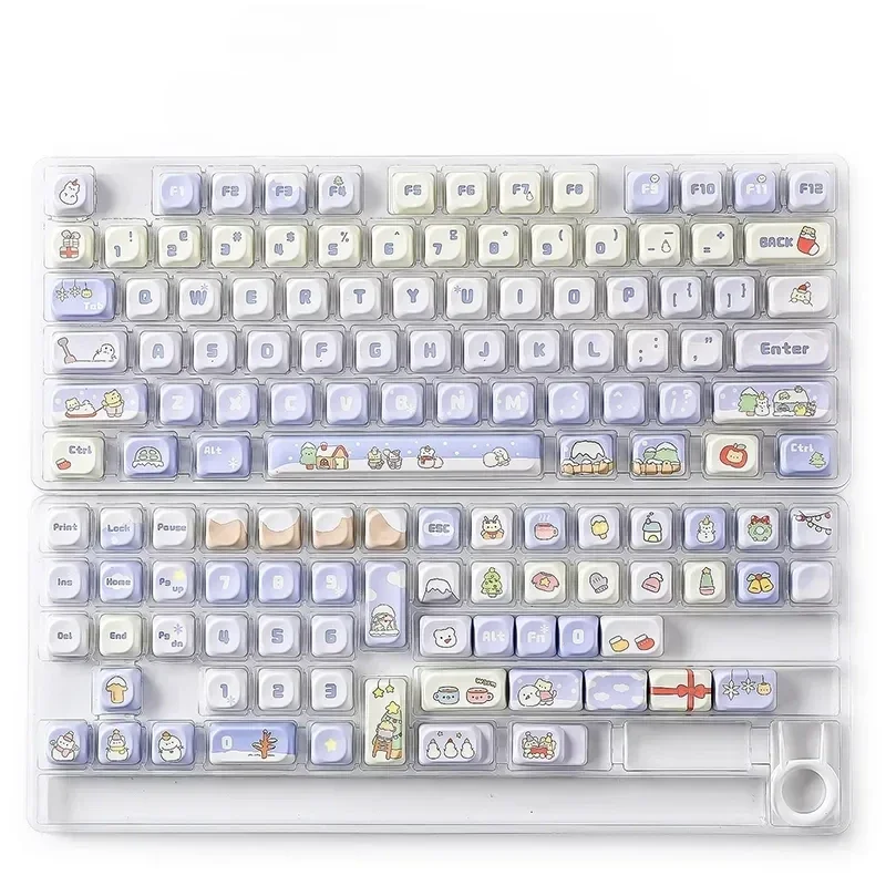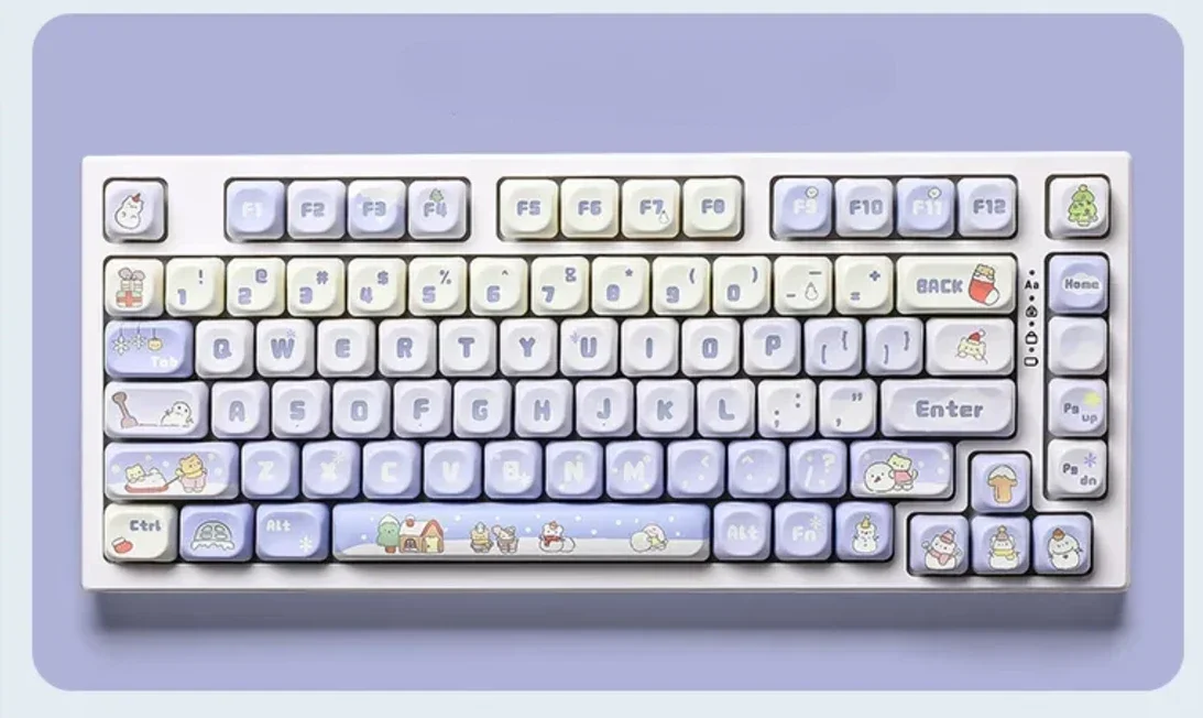 Escape into a serene winter wonderland every time you type with our exquisite Serene Winter Wonderland MOA Keycap Set. Designed to transform your mechanical keyboard into a desktop masterpiece, these keycaps embody the tranquil beauty and cozy charm of a snow-kissed landscape. Each keycap is meticulously crafted from durable PBT/ABS material, featuring vibrant, fade-resistant dye-sublimated legends that capture the cool tones and unique character of a serene winter scene. The distinctive MOA profile offers a comfortable, uniform typing experience, perfect for creative sessions or simply enjoying a moment of calm. This full mechanical keyboard set is more than just an accessory; its an invitation to personalize your space with artistic elegance and bring a touch of peaceful serenity to your daily routine. Elevate your setup with these unique Winter Keycap Set, a perfect blend of aesthetics and premium functionality.