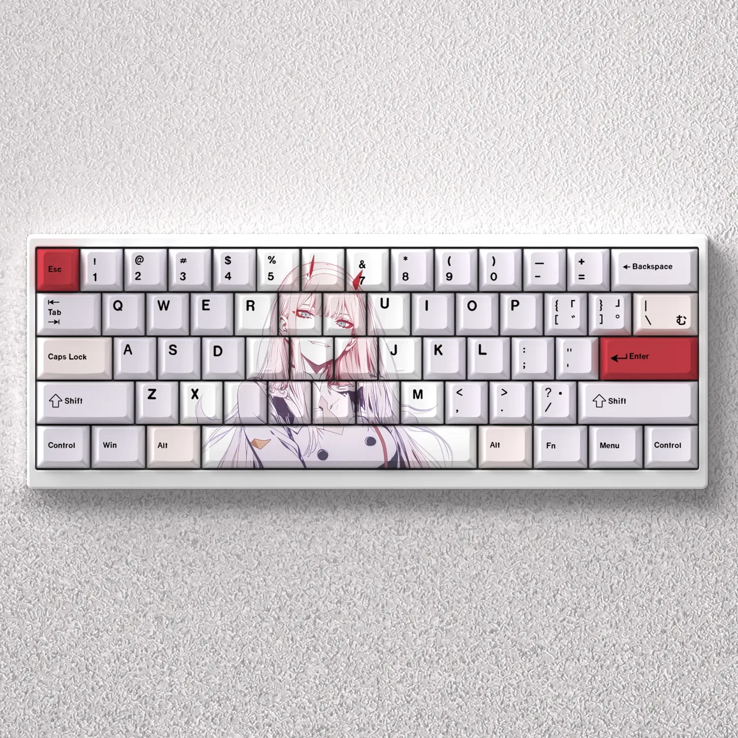 Unleash the powerful spirit of Zero Two across your desk with this breathtaking DARLING in the FRANXX: Iconic Zero Two Cherry Keycap Set. Dive into the unforgettable world of Darling in the Franxx every time you type or game. These aren’t just any Zero Two keycaps set that they are a premium tribute, crafted from durable PBT material for an exceptional feel and lasting vibrancy. Featuring crisp, dye-sublimated legends, the iconic pink and white anime aesthetic comes to life with unmatched clarity. Perfect for dedicated fans, gamers, and creators, these Darling Franxx keycaps transform your setup into a unique statement piece. Experience superior tactility and a visually striking upgrade that truly stands out. Searching for custom mechanical keycaps that express your individuality? This high-quality PBT anime keycaps set offers the ultimate blend of style, durability, and a deep connection to your favorite series. Make your keyboard a legend.